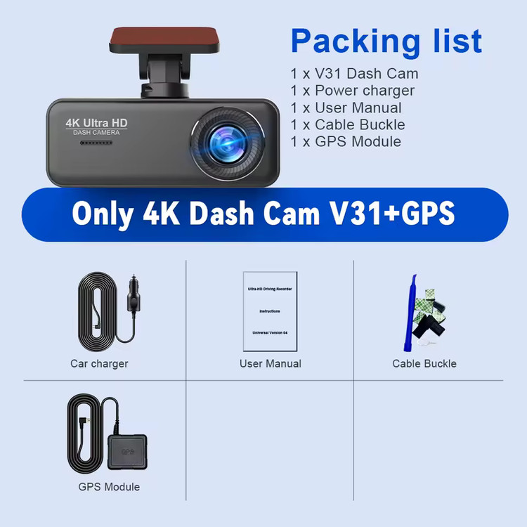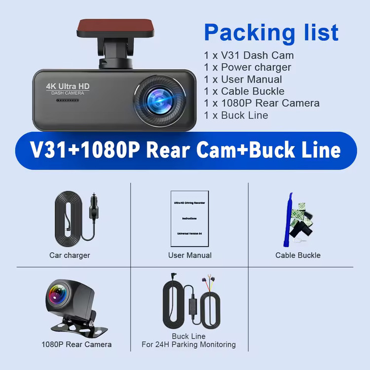 دوربین 4K WiFi Ultra HD Camera V31 نسل جدیدی از دوربینهای خودرو است که با ترکیب کیفیت تصویربرداری فوقالعاده، امکانات هوشمند و طراحی جمعوجور، امنیت و آرامش خاطر شما را در هر سفر تضمین میکند. این دوربین با رزولوشن 4K واقعی (3840×2160) قادر است کوچکترین جزئیات مسیر را ثبت کند؛ از شماره پلاکها تا علائم جادهای.