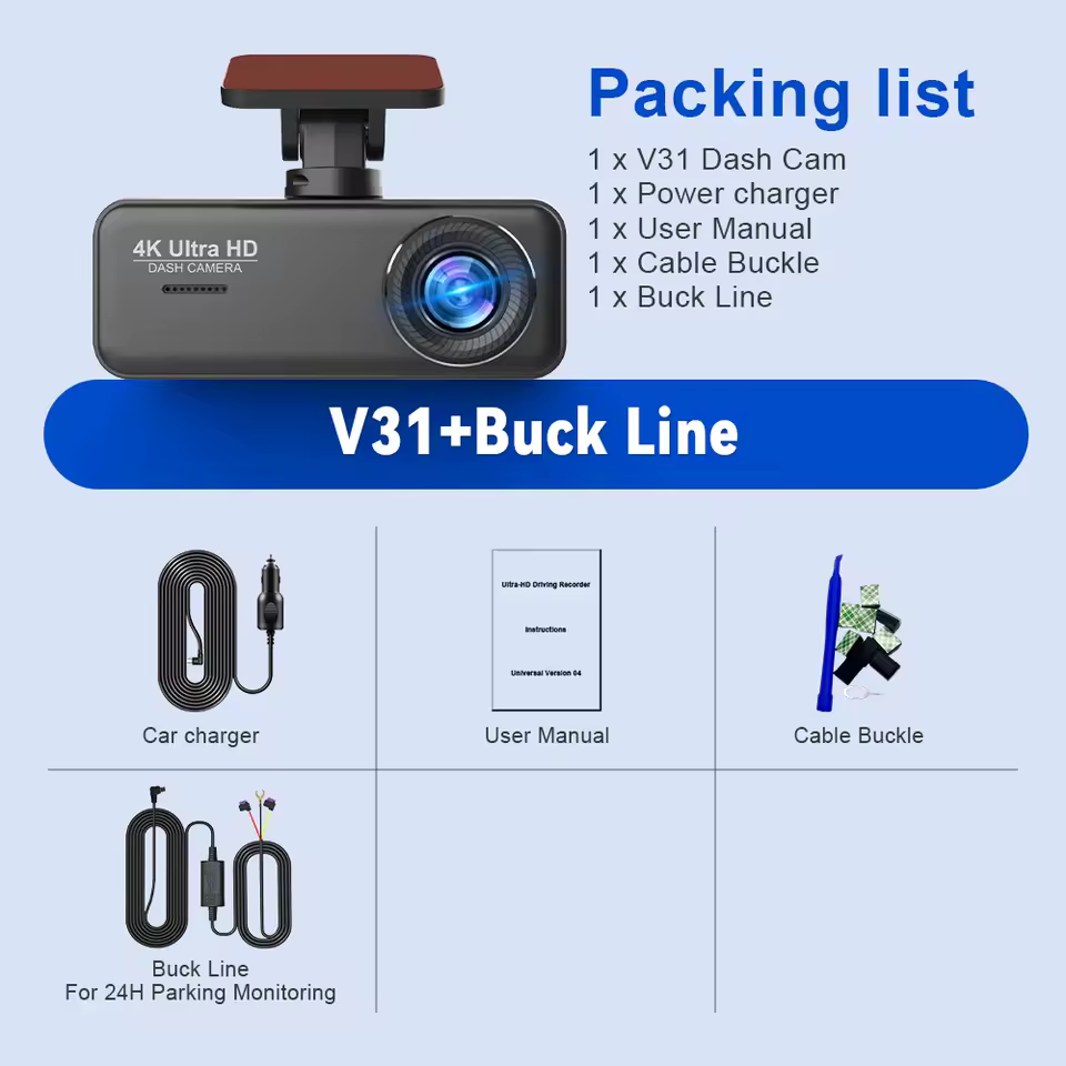 دوربین 4K WiFi Ultra HD Camera V31 نسل جدیدی از دوربینهای خودرو است که با ترکیب کیفیت تصویربرداری فوقالعاده، امکانات هوشمند و طراحی جمعوجور، امنیت و آرامش خاطر شما را در هر سفر تضمین میکند. این دوربین با رزولوشن 4K واقعی (3840×2160) قادر است کوچکترین جزئیات مسیر را ثبت کند؛ از شماره پلاکها تا علائم جادهای.