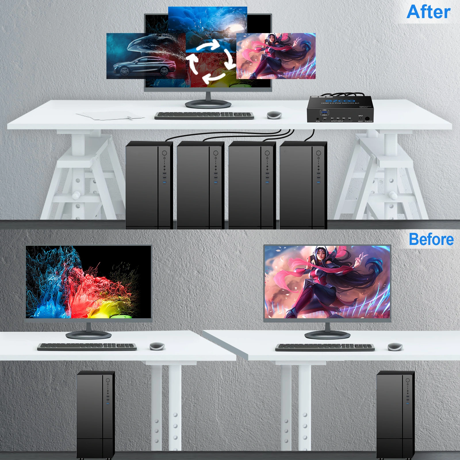 4-Port HDMI 4K 60Hz یک راهکار حرفهای و پیشرفته برای مدیریت همزمان چند کامپیوتر با استفاده از یک مجموعه تجهیزات (کیبورد، موس و مانیتور) است. این دستگاه به کاربران اجازه میدهد تا تا ۴ سیستم مختلف را به راحتی کنترل کنند و با کیفیت تصویری ۴K در نرخ تازهسازی ۶۰ هرتز تجربهای بینظیر در مدیریت چند سیستم داشته باشند.