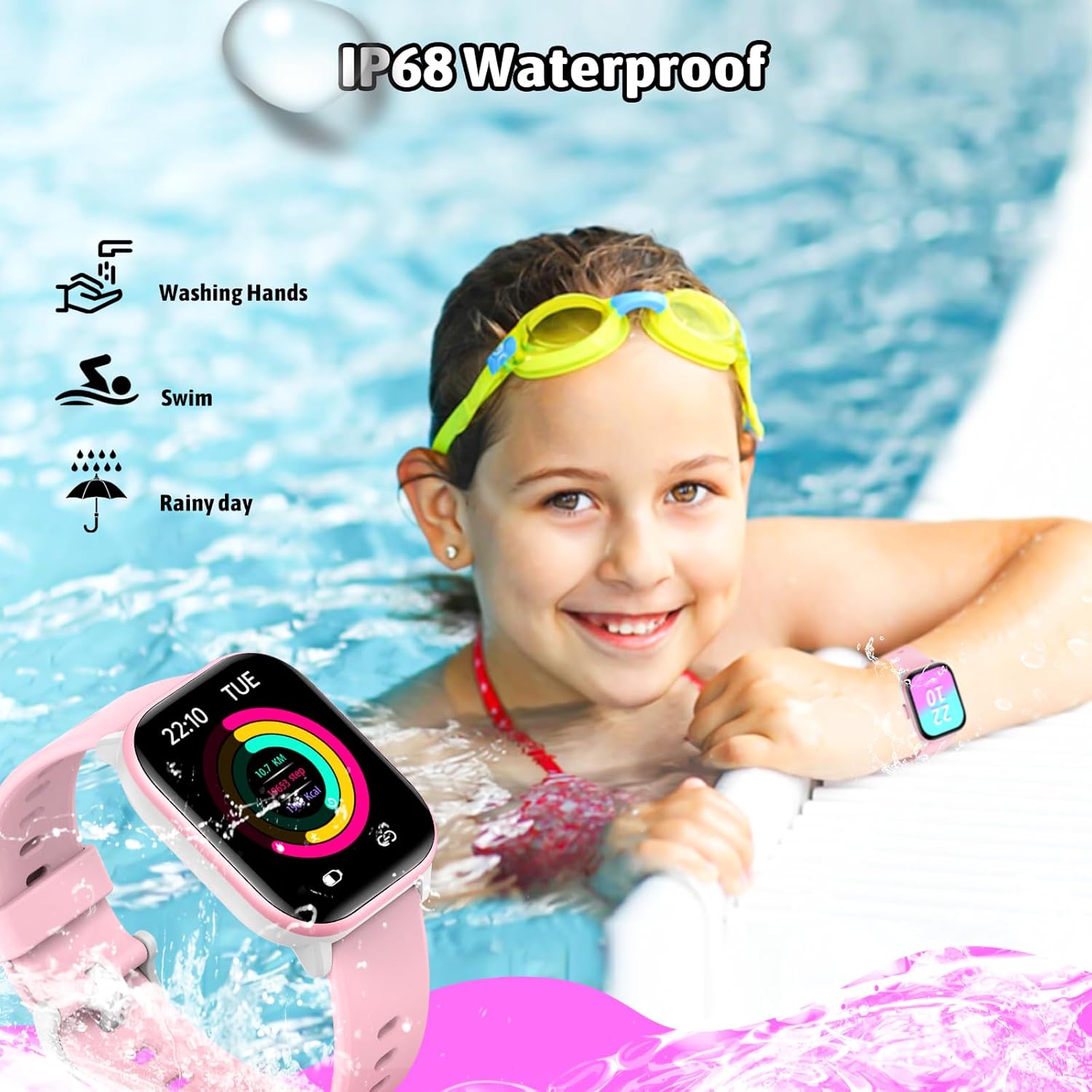 طراحی ضدآب (سطح مقاومت IP68) باعث میشود کودک بتواند بدون نگرانی هنگام شستن دست یا بازی در فضای باز از آن استفاده کند. همچنین باتری بادوام آن با یکبار شارژ تا چند روز قابلاستفاده است.