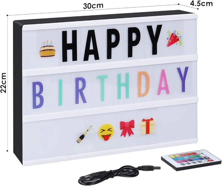 تابلو نئون باکس LED مدل A4 یک انتخاب فوقالعاده برای تزئین اتاق، جشن تولد، عکاسی یا دکور فروشگاه شماست. این محصول با طراحی مدرن و قابلیت تغییر پیامها به کمک 347 عدد حروف، اعداد و ایموجی رنگی، به شما اجازه میدهد هر روز پیام خاص خود را بسازید.