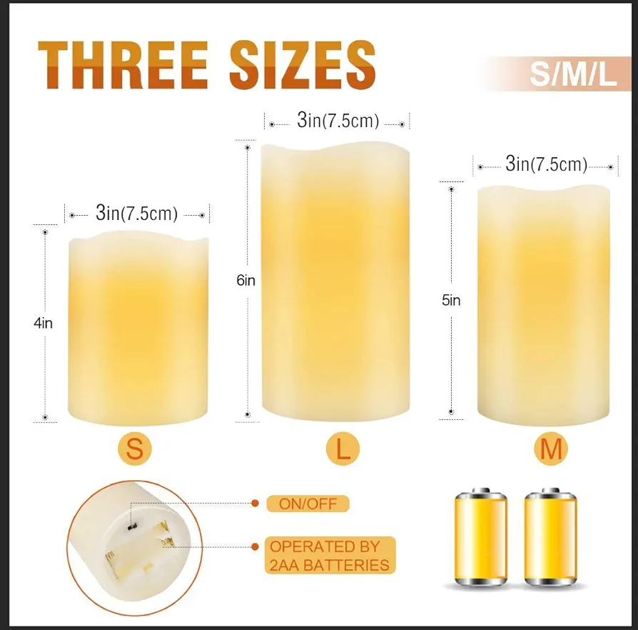 با هر جفت باتری AA، شمعها میتوانند تا چند هفته روشنایی مداوم ارائه دهند، بسته به استفاده از تایمر و روشنایی.