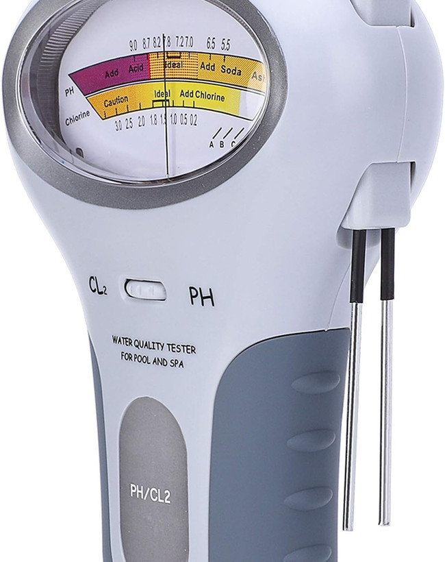 دستگاه تحلیلگر الکترونیکی کلر و pH استخر برند Ejoyous، با قابلیت اندازهگیری سریع و دقیق سطح کلر (CL₂) و pH آب استخر یا جکوزی، مناسب برای استفادهٔ خانگی یا تجاری. این دستگاه با طراحی جمعوجور، بدنه پلاستیکی مقاوم و نمایشگر دیجیتال خوانا، به شما امکان میدهد تا بهراحتی سلامت و کیفیت آبِ استخر را کنترل کنید، از بروز مشکلاتی مانند رشد جلبک، تحریک پوست یا چشم، یا خوردگی تجهیزات جلوگیری نمایید. با این ابزار میتوانید قبل از ورود به فصل شنا یا بهصورت دورهای، سطح کلر و pH را در بازهٔ مطلوب نگه دارید و با آگاهی کامل، عملیات افزودن مواد شیمیایی را انجام دهید. دستگاه Ejoyous در واقع ابزاری کلیدی برای ایمنی و نگهداری اصولی استخر شماست.