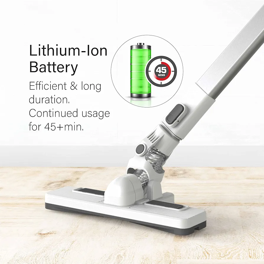 جارو شارژی بیسیم ELUXGO EC27 ترکیبی از قدرت، سبکوزنی و طراحی ارگونومیک است که تجربهای مدرن از نظافت خانگی را ارائه میدهد. این دستگاه با موتور قدرتمند 120 وات و مکش دوحالته (کم و زیاد)، توانایی جمعآوری گرد و غبار، مو و ذرات ریز را از روی فرش، مبلمان و کف سخت دارد. باتری لیتیومی 2000 میلیآمپری این جارو، تا ۴۵ دقیقه کارکرد مداوم را فراهم میکند و تنها در چند ساعت شارژ میشود.
