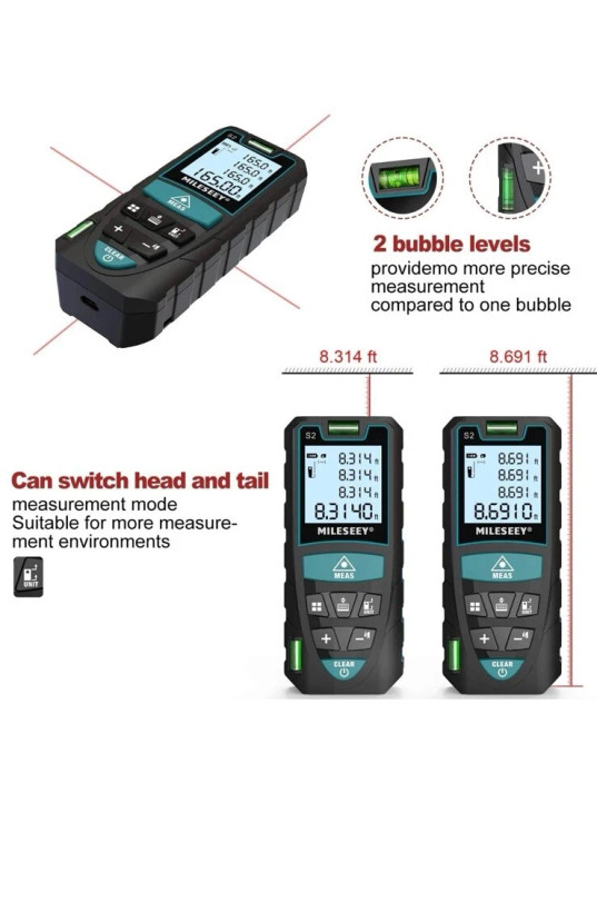 طراحی ارگونومیک، صفحهنمایش LCD با نور پسزمینه و تراز حبابی دوبل باعث شده Mileseey S2 در محیطهای مختلف، حتی در نور کم یا فضاهای باز، عملکردی فوقالعاده داشته باشد. همچنین با وجود قابلیت تبدیل واحدها (متر، فوت، اینچ)، کاربران میتوانند متناسب با نیاز پروژه خود از دستگاه استفاده کنند.