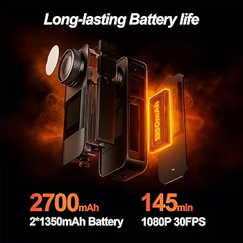 بدنه سبک و مقاوم آن باعث میشود بتوانید بهراحتی در هر موقعیتی از جمله ورزشهای آبی، کوهنوردی، موتورسواری یا سفرهای طبیعتگردی از آن استفاده کنید. این دوربین از کارت حافظه microSD تا ظرفیت 128 گیگابایت پشتیبانی میکند و با داشتن باتریهای قابل تعویض 1350 میلیآمپرساعتی، امکان ضبط طولانیمدت را برای شما فراهم میکند.