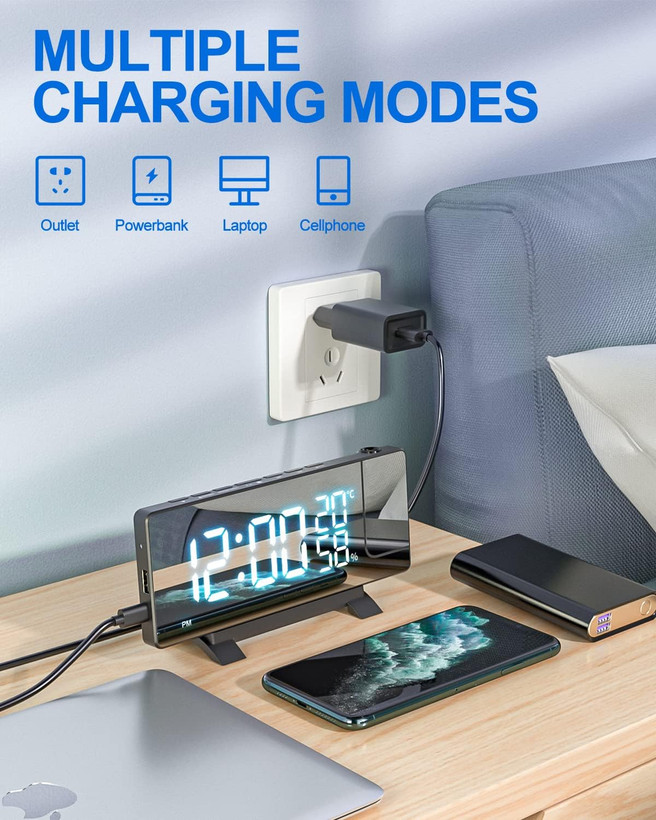 پورت USB تعبیهشده در پشت دستگاه، امکان شارژ همزمان موبایل یا گجتهای دیگر را فراهم میسازد. همچنین وجود باتری پشتیبان (CR2032) سبب میشود حتی در زمان قطعی برق، تنظیمات و زمان از بین نرود.