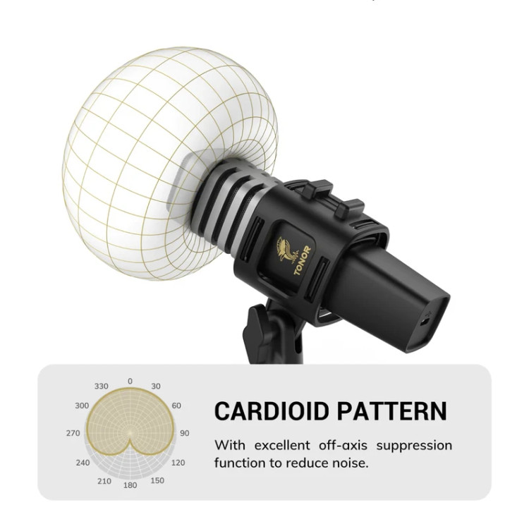 الگوی قطبی: کاردیویید (Cardioid) – مناسب برای تمرکز روی صدای جلو و حذف نویزهای اطراف