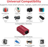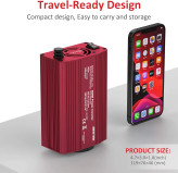 طراحی بدنهی آلومینیومی قرمز رنگ، علاوه بر زیبایی، موجب مقاومت بالا در برابر حرارت و ضربه شده است. این مدل دارای دو پورت USB با توان خروجی مجموع ۴.۸ آمپر (۲.۴A × ۲) است که شارژ سریع و همزمان دو دستگاه را ممکن میسازد. همچنین یک پریز برق استاندارد AC برای اتصال دستگاههای برقی کوچک در نظر گرفته شده است.