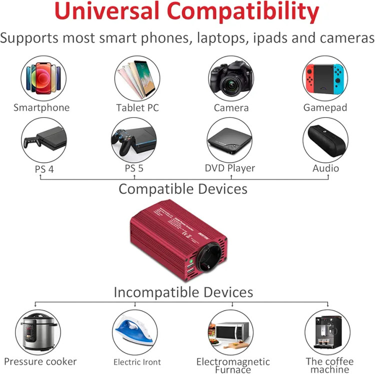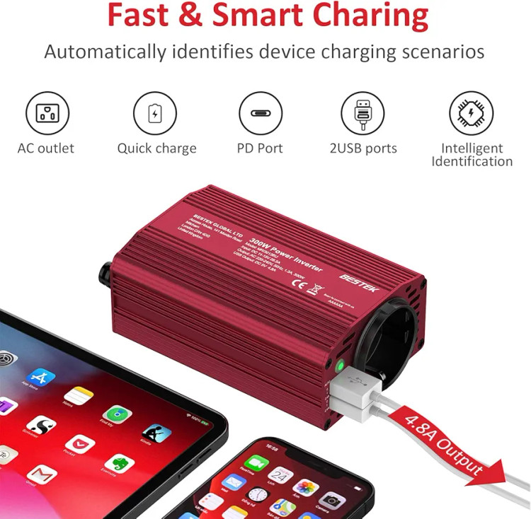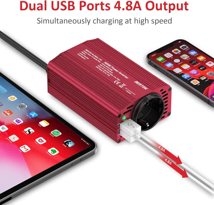 مبدل برق خودرو BESTEK 300W برای رانندگان حرفهای، مسافران جادهای، کمپینگ و افرادی که به برق قابلحمل نیاز دارند، انتخابی هوشمندانه است. با این اینورتر، دیگر نگرانی از خاموش شدن باتری دستگاهها در سفر نخواه
