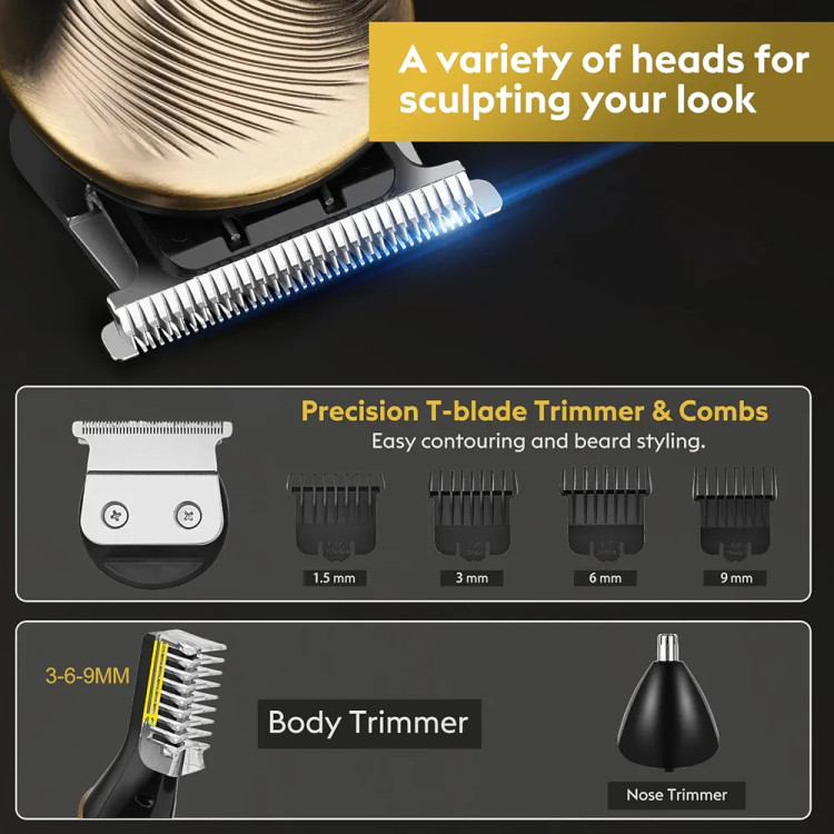این ست شامل انواع سریها و شانههای رنگی با اندازههای متفاوت است تا بتوانید بهراحتی هر مدل مویی را پیادهسازی کنید؛ از فید حرفهای گرفته تا اصلاح دقیق ریش، سبیل و خط دور گردن. همچنین با سری مخصوص بینی و گوش، نیاز به دستگاه جداگانه نخواهید داشت.
