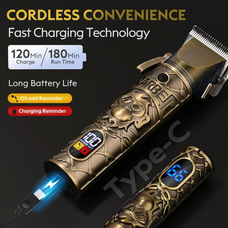 صفحهنمایش دیجیتال LED روی هر دستگاه میزان شارژ باقیمانده و وضعیت عملکرد را نشان میدهد تا همیشه کنترل کامل روی زمان اصلاح داشته باشید. باتری لیتیومی قوی این مدل با قابلیت شارژ سریع USB، تا چند ساعت کار مداوم را فراهم میکند و برای استفاده خانگی و سالنی ایدهآل است.