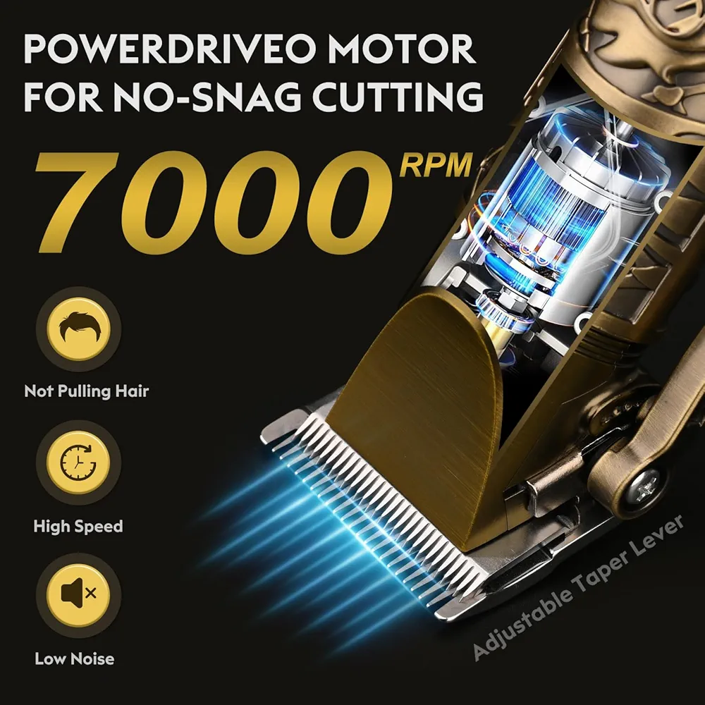 ماشین اصلاح حرفهای YIDON مدل JM-G70CC یکی از جدیدترین و قدرتمندترین ستهای اصلاح مردانه است که ترکیبی از طراحی کلاسیک و فناوری مدرن را ارائه میدهد. این مجموعه شامل دو دستگاه اصلی (ماشین اصلاح سر و خطزن دقیق) است که هر دو از موتور پرقدرت با عملکرد بالا و صدای بسیار کم بهره میبرند. طراحی تمامفلزی بدنه با حکاکی خاص و رنگ طلایی برنز، جلوهای لوکس و حرفهای به آن بخشیده است.