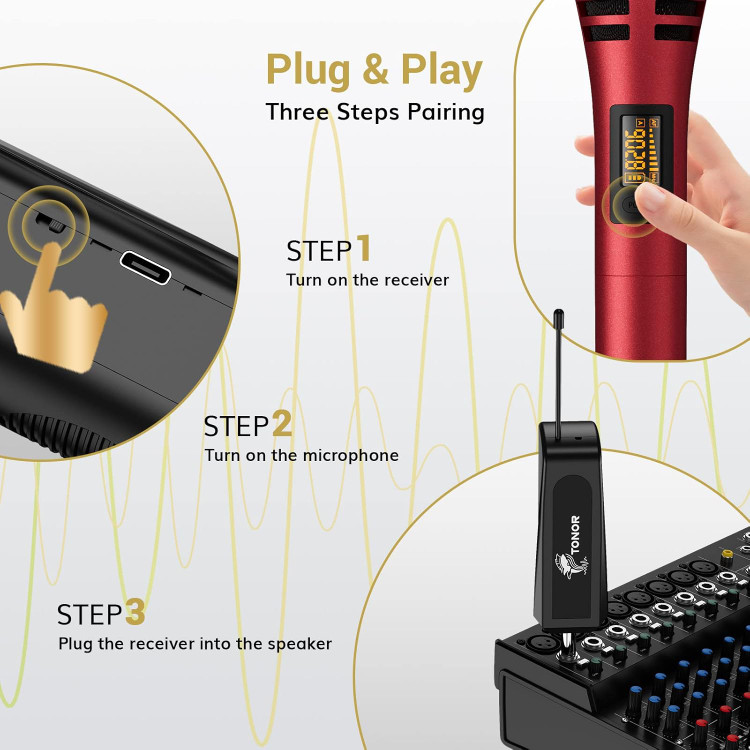 میکروفون بیسیم دینامیک برند TONOR مدل tw320 (پک دو عددی) (خاکستری و قرمز)