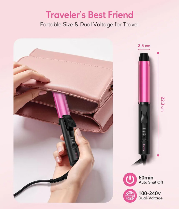 اگر به دنبال یک فر کننده موی مسافرتی و سبک هستید که بتوانید هر جا هستید موهای خود را حالت دهید، Farey Mini Pro 25mm انتخابی ایدهآل است. این مدل با طراحی ارگونومیک، کابل چرخان 360 درجه و سیستم دو ولتاژ جهانی (100–240V)، برای استفاده در سفر و داخل کشور کاملاً مناسب است.