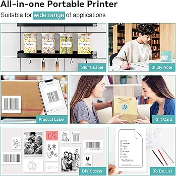 ابعاد کوچک این چاپگر باعث شده بهراحتی در کیف قرار گیرد و در هر موقعیتی قابل استفاده باشد. برای سازماندهی وسایل منزل، برچسبگذاری ادویهجات، برچسب اسم کودکان روی لباس و وسایل مدرسه، قیمتگذاری محصولات دستساز و خانگی، لیبلهای آرایشی و بهداشتی و حتی چاپ لیبلهای دکوری و انگیزشی گزینهای ایدهآل محسوب میشود.