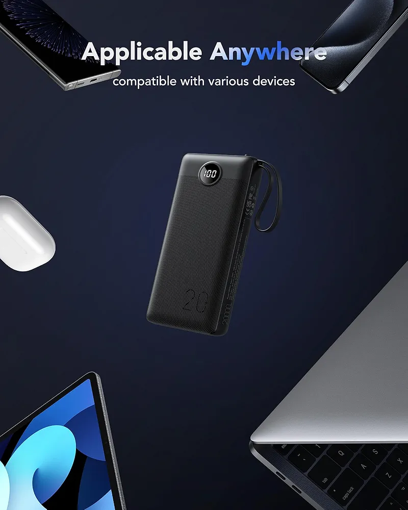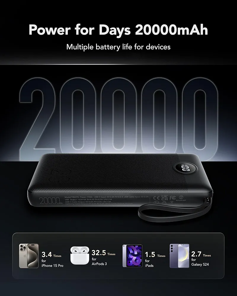 نمایشگر LED روی بدنه، میزان دقیق شارژ را نمایش میدهد و به شما کمک میکند انرژی باقیمانده را مدیریت کنید. همچنین وجود بند نگهدارنده به حمل آسانتر دستگاه کمک میکند و آن را به همراهی ایدهآل در سفر و فعالیتهای روزانه تبدیل میکند.