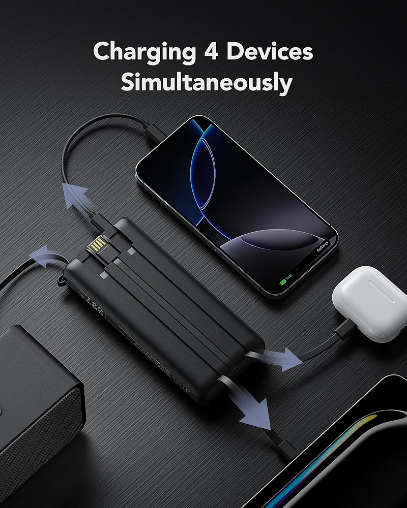 پورتهای متنوع این پاوربانک سرعت شارژ بسیار خوبی ارائه میدهند و با سیستمهای هوشمند ایمنی مانند محافظت در برابر افزایش ولتاژ، افزایش دما و شارژ بیش از حد همراه شدهاند. بنابراین میتوانید با خیال راحت گوشی موبایل، تبلت، هندزفری، اسپیکر قابل حمل و سایر گجتهای خود را شارژ کنید.