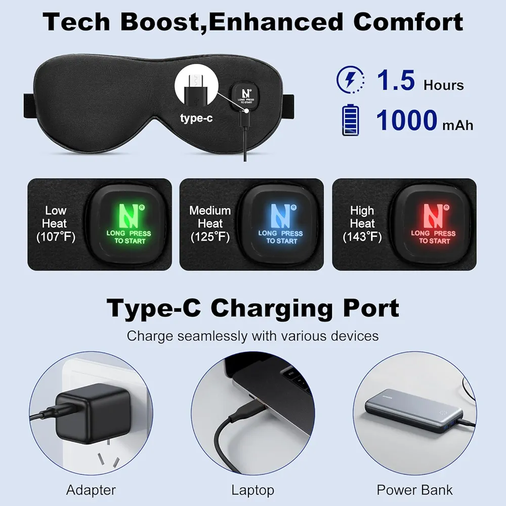 روکش ماسک قابل جداسازی و شستوشو است و میتوانید روی آن شستوشوی ماشین لباسشویی انجام دهید (پس از خارج کردن بخش گرمایی). همچنین طراحی مسدودکنندهی کامل نور، شرایط ایدهآل برای آرامش چشم را در محیط تاریک فراهم میکند.