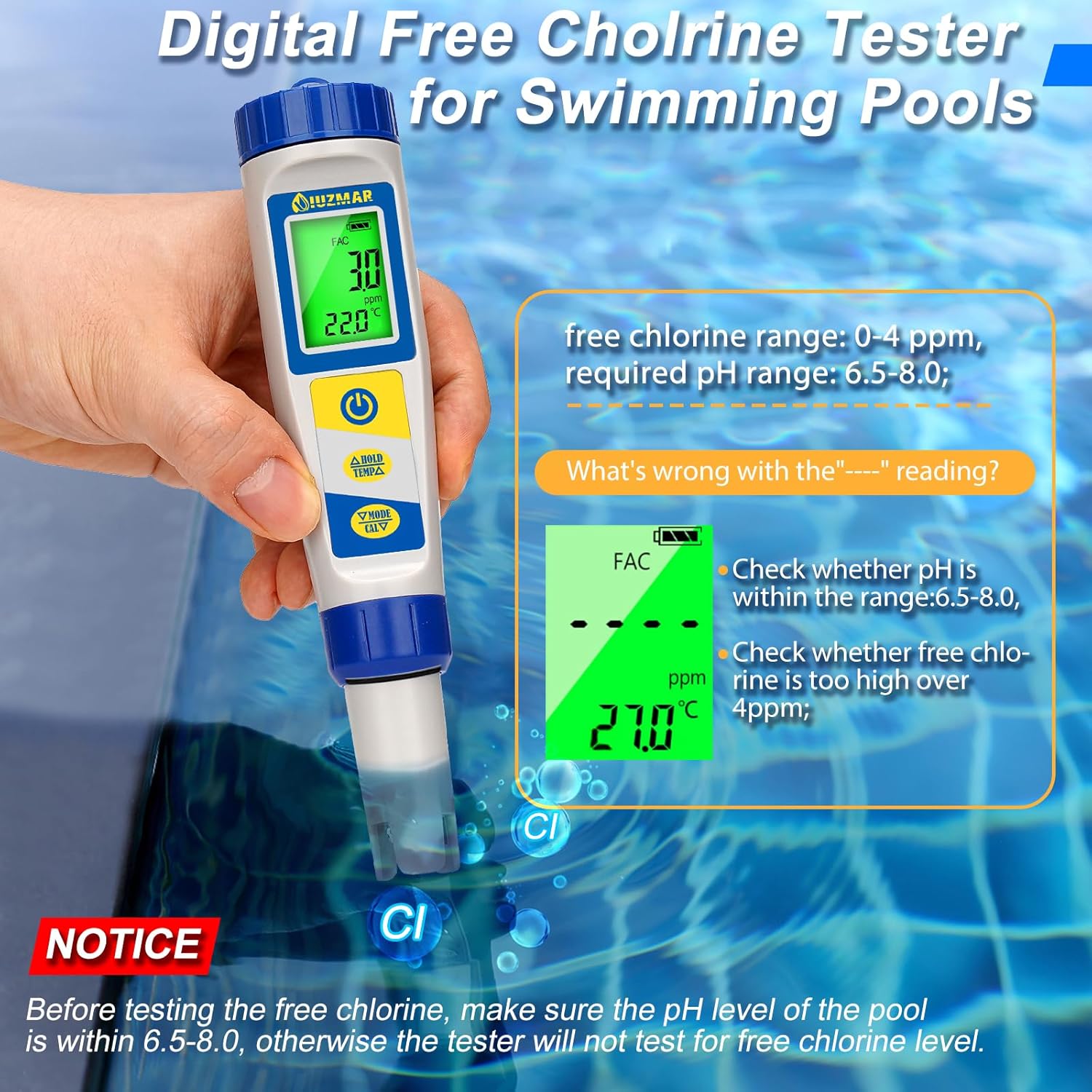 این دستگاه با طراحی قلمی و وزن سبک، بهراحتی قابلحمل است و تنها با قرار دادن سنسور در نمونه آب، نتایج دقیق را بر روی صفحهنمایش LCD با نور پسزمینه نشان میدهد. تستر UI-CL02 قابلیت اندازهگیری pH، TDS، EC، ORP، دما، شوری (Salinity) و وزن مخصوص (SG) را دارد و تمام این دادهها را با سرعت و دقت بالا در اختیار کاربر قرار میدهد.