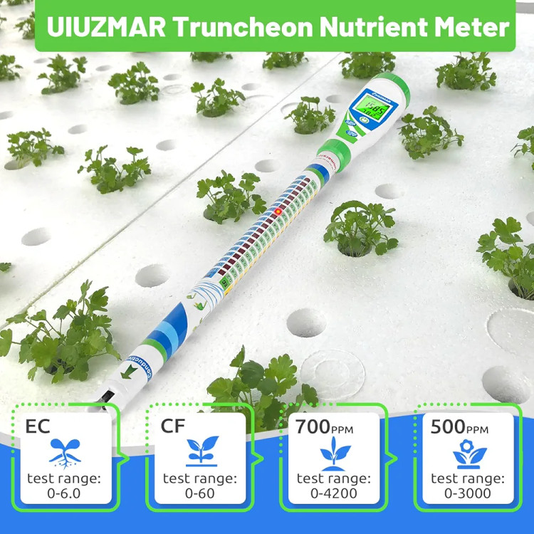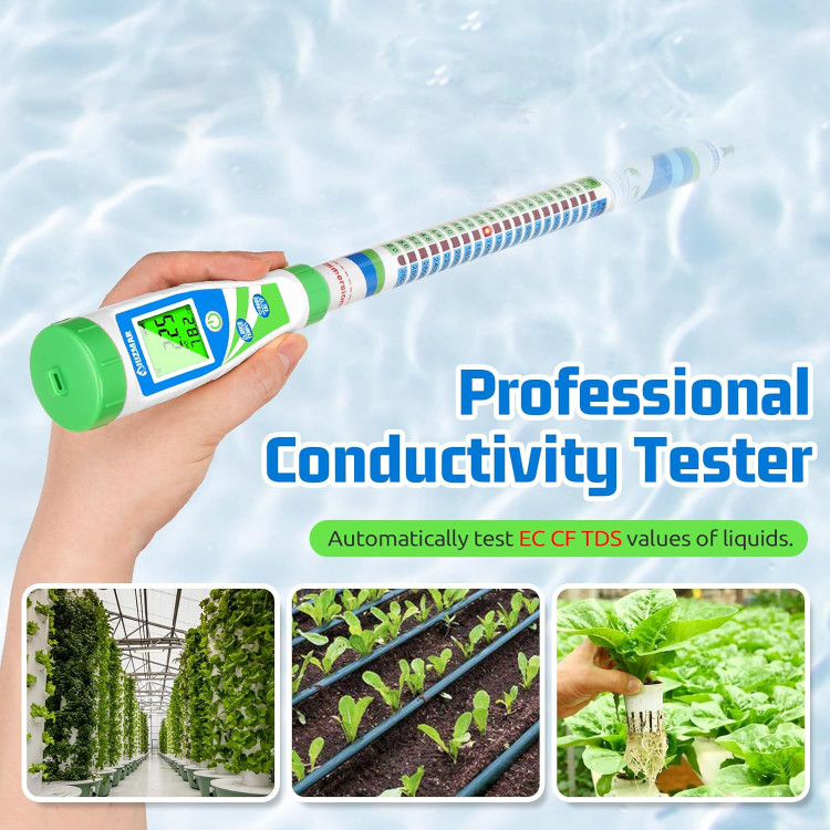 کِشِی (تیِر) اندازهگیری هدایتی UIUZMAR دستگاهی چندکاره و دقیق است که برای سیستمهای هیدروپونیک، آکواریوم، گلخانه، کشت داخل خانه و بررسی کیفیت آب طراحی شده است. با این ابزار میتوانید میزان هدایت الکتریکی (EC)، مقدار جامدات محلول (TDS) در مقیاسهای PPM500 و PPM700، و عامل تبدیل (CF) را در یک دستگاه واحد خوانش کنید. این تیِر به گونهای طراحی شده که همزمان هنگام هم زدن محلول، مقدار را نشان دهد و دیگر نیازی به جدا کردن ابزار برای اندازهگیری نیست.