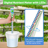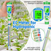 طول پروب حدود ۲۰ اینچ است، بنابراین میتوانید به عمق مخازن نیز برسید. صفحه نمایش LED همراه با نور پسزمینه به خوانش در محیط کمنور کمک میکند. علاوه بر این، دستگاه دارای عملکرد HOLD (قفل نمایش مقدار) است تا پس از خارج کردن از محلول، مقدار خوانده شده را بتوان بهراحتی ثبت کرد. واحدها به راحتی بین CF / EC / PPM500 / PPM700 قابل تبدیل هستند.