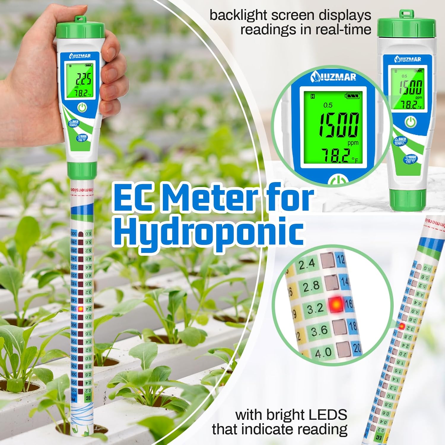 کِشِی (تیِر) اندازهگیری هدایتی UIUZMAR دستگاهی چندکاره و دقیق است که برای سیستمهای هیدروپونیک، آکواریوم، گلخانه، کشت داخل خانه و بررسی کیفیت آب طراحی شده است. با این ابزار میتوانید میزان هدایت الکتریکی (EC)، مقدار جامدات محلول (TDS) در مقیاسهای PPM500 و PPM700، و عامل تبدیل (CF) را در یک دستگاه واحد خوانش کنید. این تیِر به گونهای طراحی شده که همزمان هنگام هم زدن محلول، مقدار را نشان دهد و دیگر نیازی به جدا کردن ابزار برای اندازهگیری نیست.