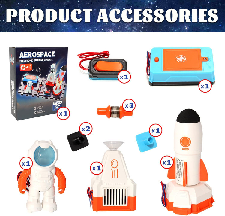 کیت آموزشی Aerospace Electronic Building Blocks یک مجموعه علمی و سرگرمکننده است که به کودکان اجازه میدهد مفاهیم الکترونیک، مهندسی و فضا را به شکلی عملی و هیجانانگیز تجربه کنند. این محصول ترکیبی از بلوکهای سازهای و قطعات الکترونیکی واقعی است که امکان ساخت مدارها، سیستمهای نوری و مدلهای فضایی (مانند موشک و سفینه) را فراهم میکند.