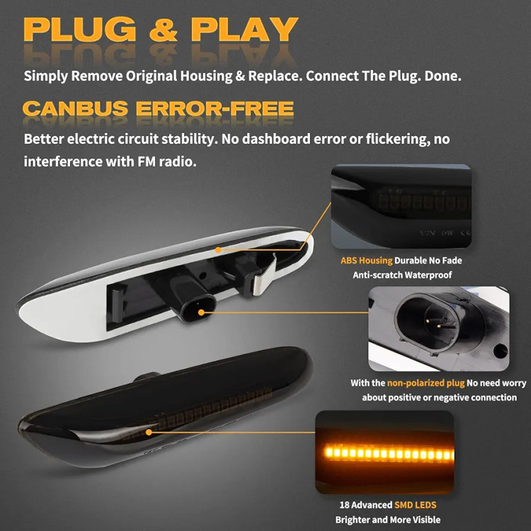این مدل از فناوری LED با شدت نور بالا و مصرف انرژی پایین استفاده میکند که باعث طول عمر بیشتر و پایداری در عملکرد میشود. چراغها دارای طراحی دودی (smoke) یا شفاف (clear) بوده و بهصورت Plug & Play نصب میشوند؛ یعنی بدون نیاز به سیمکشی اضافی، مستقیماً روی سوکت فابریک خودرو نصب میشوند. همچنین این محصول با داشتن E-Mark و استاندارد CE از نظر قانونی برای استفاده در جادهها مجاز است.