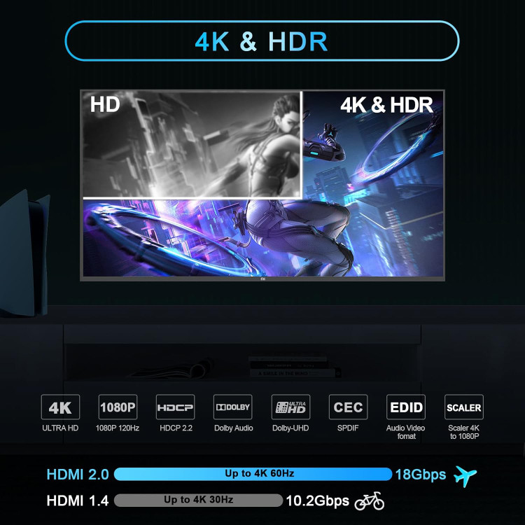 ⚡ پهنای باند بالا (18 Gbps) برای انتقال روان تصویر