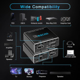 استخراجکننده صدای HDMI ROFAVEZCO از انواع فرمتهای صوتی Dolby Digital، DTS، LPCM 2.0 پشتیبانی میکند و با اغلب دستگاههای صوتی و تصویری سازگار است. طراحی فلزی مقاوم، خنکسازی بهینه، و دکمهی EDID Switch برای مدیریت نوع صدای خروجی، عملکردی پایدار و حرفهای را تضمین میکند.