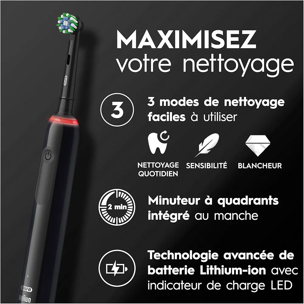 این مسواک مجهز به فناوری سهبعدی (3D Cleaning Technology) است که با حرکت نوسانی، چرخشی و لرزشی پلاکهای دندانی را بهطور کامل از بین میبرد. سنسور فشار تعبیهشده روی دسته، از آسیب دیدن لثهها جلوگیری کرده و کاربر را هنگام فشار بیش از حد هشدار میدهد.