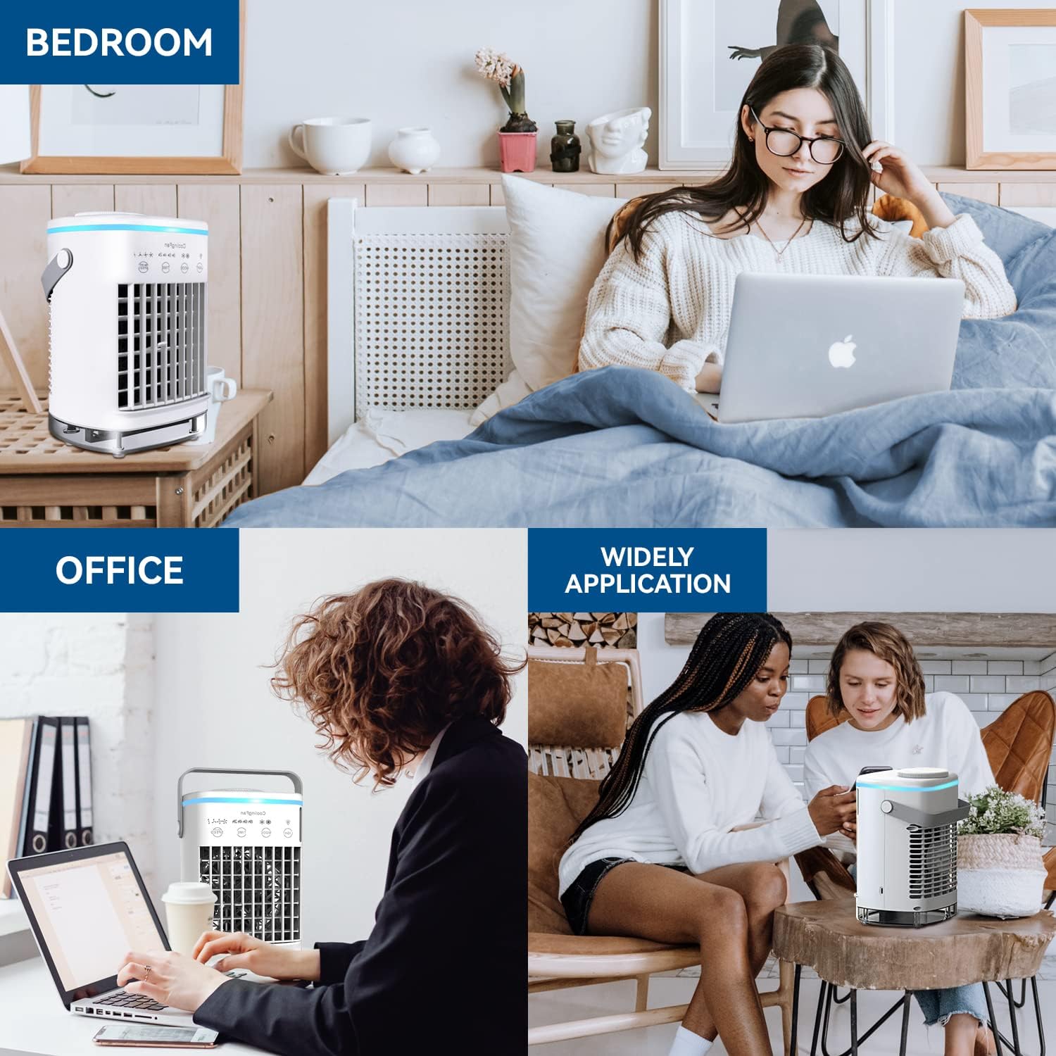 برای کسانی که به دنبال راهحل کممصرف، بیصدا (حدود ۳۸ دسیبل) و آسان برای استفاده هستند، این خنککننده تبخیری شخصی انتخاب بسیار مناسبی ا