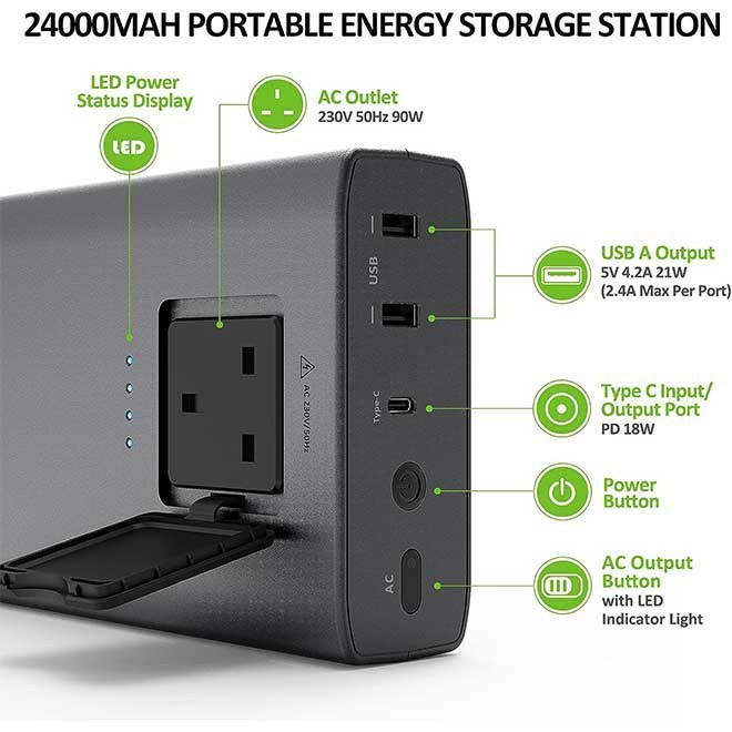 برای لپتاپ، تبلت، گوشی موبایل، دوربین دیجیتال و گجتهای قابل شارژ با برق AC مناسب است.