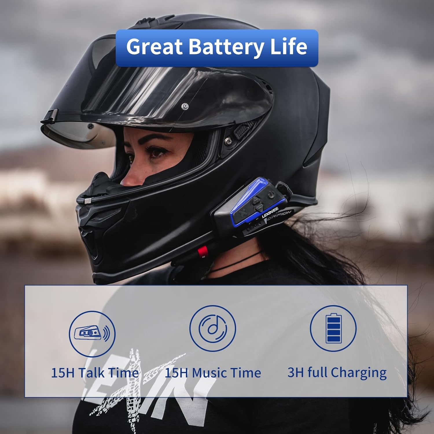 با اسپیکرهای استریو و میکروفون با قابلیت کاهش نویز، هدست LEXIN B4FM صدای شفاف و بدون اختلال را در هنگام سرعت بالا و باد شدید ارائه میکند. باتری با دوام طولانی این دستگاه، تا ۱۵ ساعت مکالمه یا پخش موسیقی را پشتیبانی میکند و فناوری شارژ سریع باعث میشود کمتر منتظر بمانید. علاوه بر این، امکان اشتراک موسیقی بین راننده و سرنشین، تجربهای سرگرمکننده و اجتماعی را فراهم میکند.