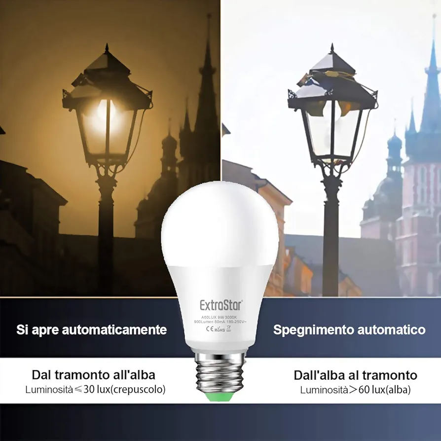 لامپ سنسوردار EXTRASTAR E27 Twilight Sensor Light یک انتخاب هوشمند و اقتصادی برای روشنایی محیطهای داخلی و بیرونی است. این لامپ با دارا بودن سنسور نور محیط (Daylight Sensor) بهصورت خودکار در هنگام تاریکی روشن و با طلوع آفتاب خاموش میشود، بدون نیاز به کلید یا تایمر. طراحی ساده و استفاده آسان آن باعث شده تا گزینهای ایدهآل برای حیاط، پارکینگ، بالکن، راهپله و ورودی ساختمانها باشد.