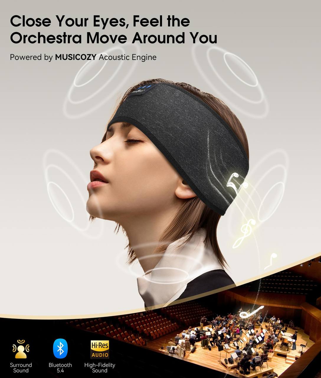 هدبند بلوتوثی خواب و ورزشی Musicozy محصولی هوشمند و چند منظوره است که برای تجربهای متفاوت از خواب، مدیتیشن و ورزش طراحی شده است. اگر از هدفونهای داخل گوش هنگام خواب خسته شدهاید یا به دنبال روشی راحت برای گوش دادن به موسیقی در هنگام خواب، سفر یا ورزش هستید، این هدبند بهترین انتخاب برای شماست.