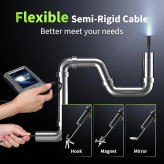 کابل نیمهسخت ۵ تا ۱۰ متری (بسته به مدل)، انعطافپذیری لازم برای عبور از مسیرهای خمیده را دارد و در عین حال بهاندازه کافی سفت است تا مسیر موردنظر شما را دنبال کند. این ویژگی باعث میشود دوربین دقیقاً همانجایی حرکت کند که شما میخواهید، و کنترل کامل در حین بازرسی داشته باشید.