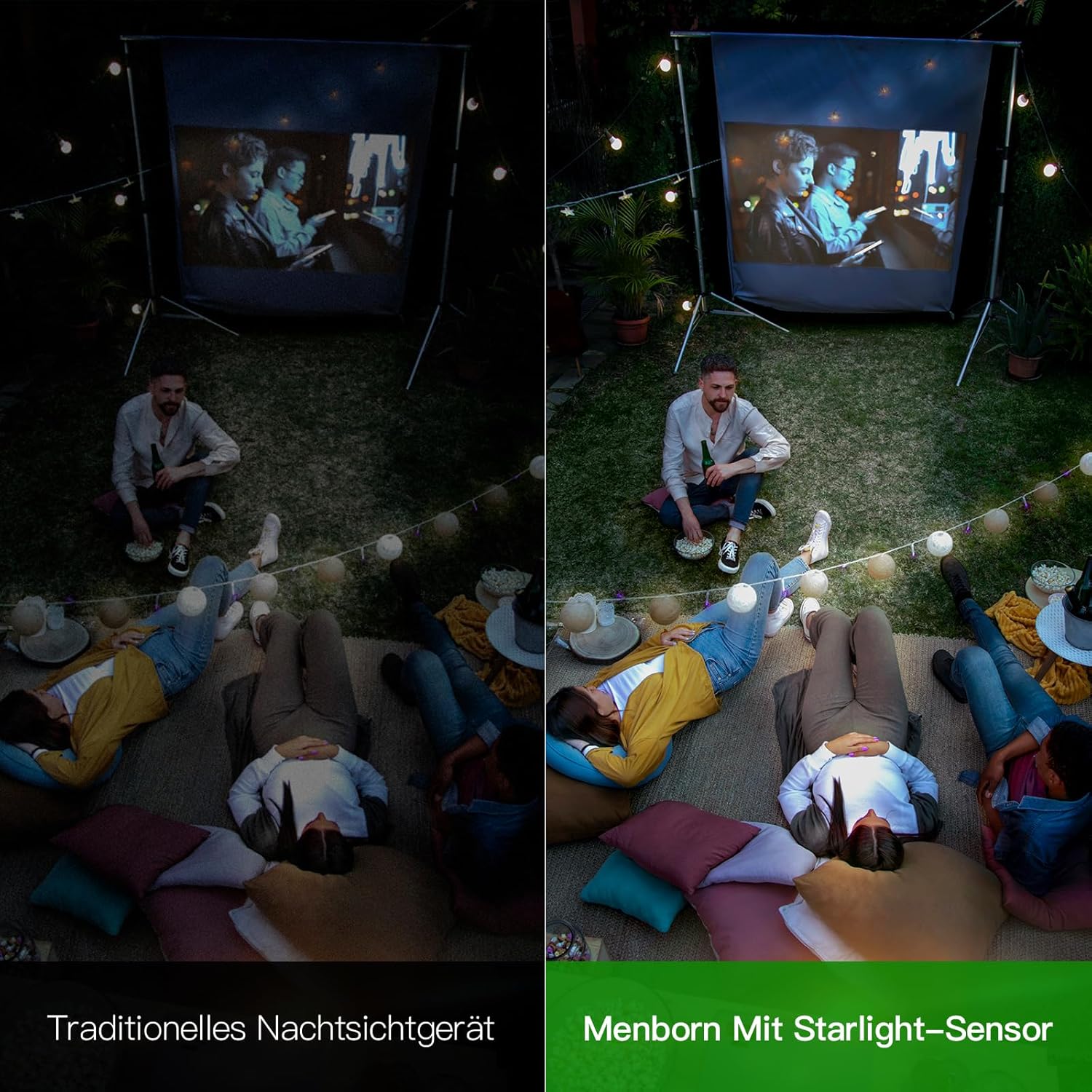 دوربین نظارتی Menborn 4MP Outdoor Security Camera یکی از جدیدترین و کاربردیترین نسل دوربینهای امنیتی خانگی است که با ترکیب فناوری دید در شب رنگی Starlight، پروژکتور قدرتمند و تشخیص حرکت PIR، حداکثر امنیت را برای حیاط، درب ورودی، پارکینگ و محیطهای بیرونی فراهم میکند. این مدل با رزولوشن 4 مگاپیکسل (2.5K) قادر است کوچکترین جزئیات را با وضوح بالا ثبت کند و به لطف لنز هوشمند و حساس به نور، حتی در تاریکی کامل نیز تصویری شفاف و رنگی ارائه میدهد.
