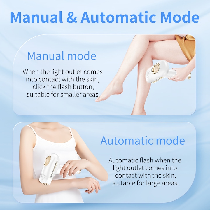 وجود حالت اتوماتیک باعث شده کار با دستگاه بسیار سریعتر و راحتتر شود، بهخصوص برای نواحی بزرگ مانند پاها و دستها. طراحی سبک، ارگونومیک و رنگ سفید شیک آن باعث شده این مدل علاوه بر عملکرد، از نظر ظاهری نیز جذاب باشد.