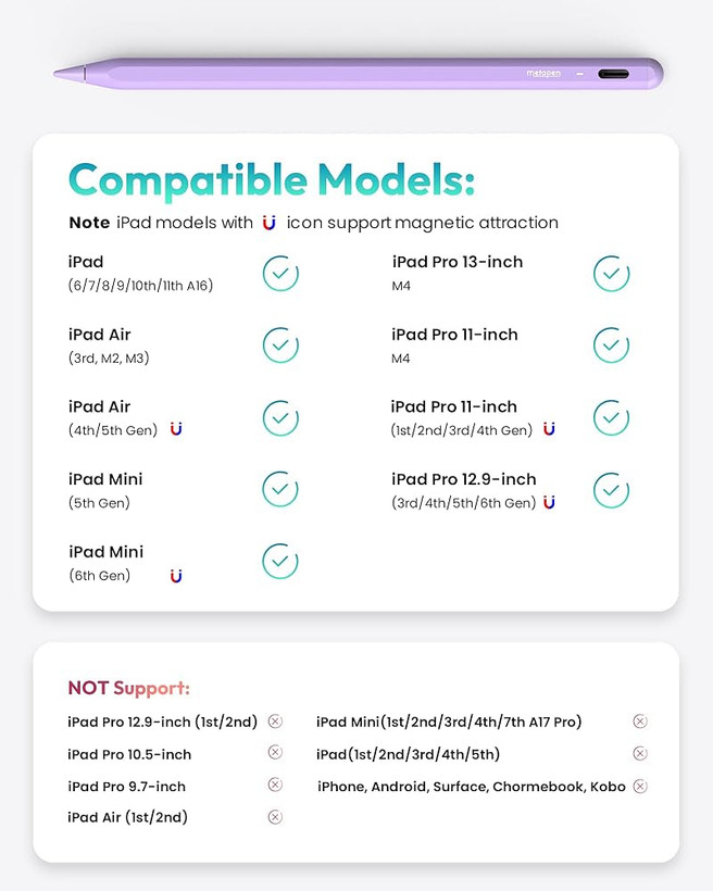 س: Metapen Pencil A8 با کدام آیپدها سازگار است؟