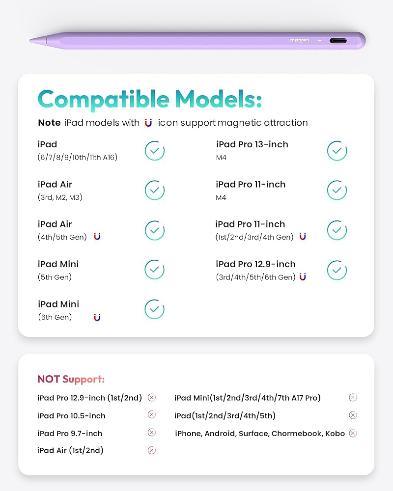 س: Metapen Pencil A8 با کدام آیپدها سازگار است؟