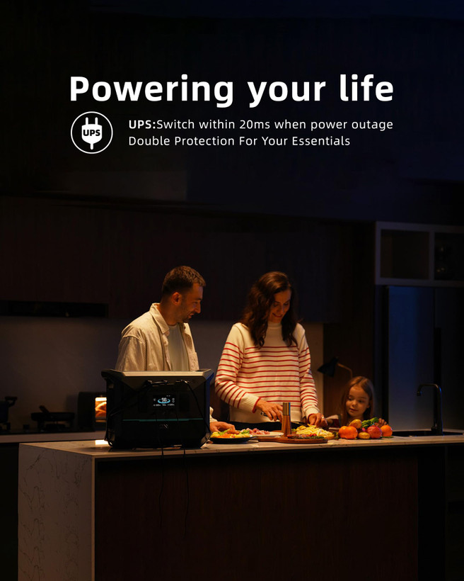 باتری LiFePO4 این مدل با بیش از 3500 چرخه عمر، دوام و ایمنی بسیار بالایی ارائه میدهد و تا سالها کیفیت خود را حفظ میکند. قابلیت UPS (منبع تغذیه اضطراری) نیز کمک میکند هنگام قطعی برق، دستگاههای حساس مانند مودم، سیستمهای امنیتی، لپتاپ یا تجهیزات پزشکی بدون حتی یک لحظه خاموشی به کار ادامه دهند.