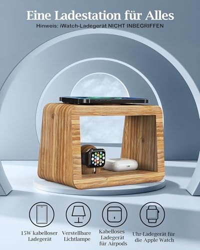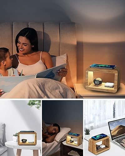 در بخش پایینی استند، یک پایهی اختصاصی برای ساعت هوشمند تعبیه شده است که بهطور کامل با ساختار ارگونومیک اپل واچ و دیگر ساعتهای مشابه سازگار است. کنار این پایه نیز یک پد شارژ بیسیم برای ایربادزهای وایرلسی قرار دارد تا بتوانید همهی دستگاههای روزمرهتان را در یک نقطه مشخص شارژ و مرتب نگه دارید. نورپردازی داخلی ملایم و مدرن این محصول، جلوهای گرم و لوکس به محیط میدهد و آن را به انتخابی عالی برای هدیه و همچنین دکور منزل یا دفتر تبدیل میکند.