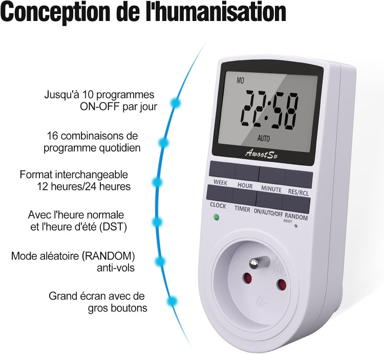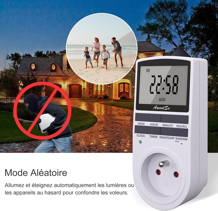 پاسخ: این تایمر به شما اجازه میدهد دستگاهها را طبق برنامه روزانه یا هفتگی روشن و خاموش کنید و حالت ضد سرقت، روشن و خاموش شدن تصادفی را فعال میکند.