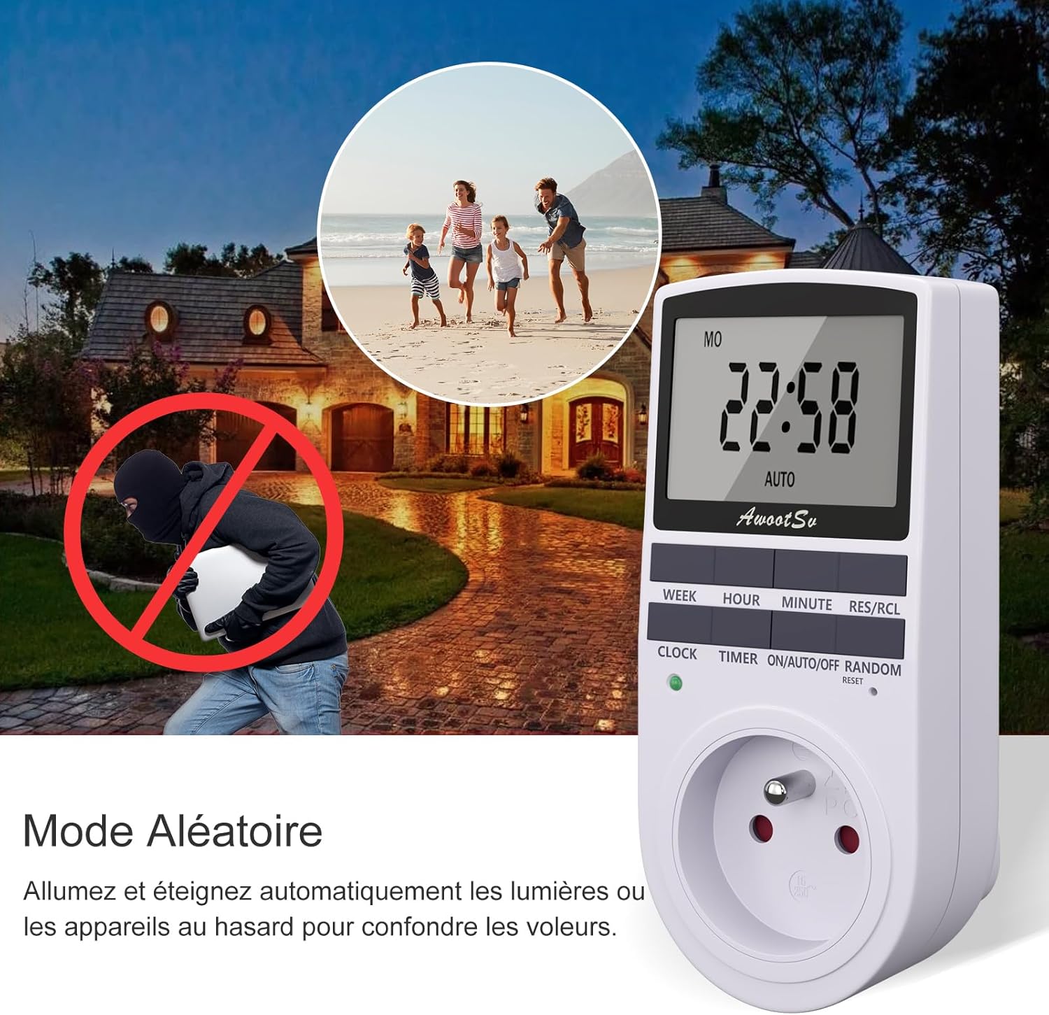 پاسخ: این تایمر به شما اجازه میدهد دستگاهها را طبق برنامه روزانه یا هفتگی روشن و خاموش کنید و حالت ضد سرقت، روشن و خاموش شدن تصادفی را فعال میکند.