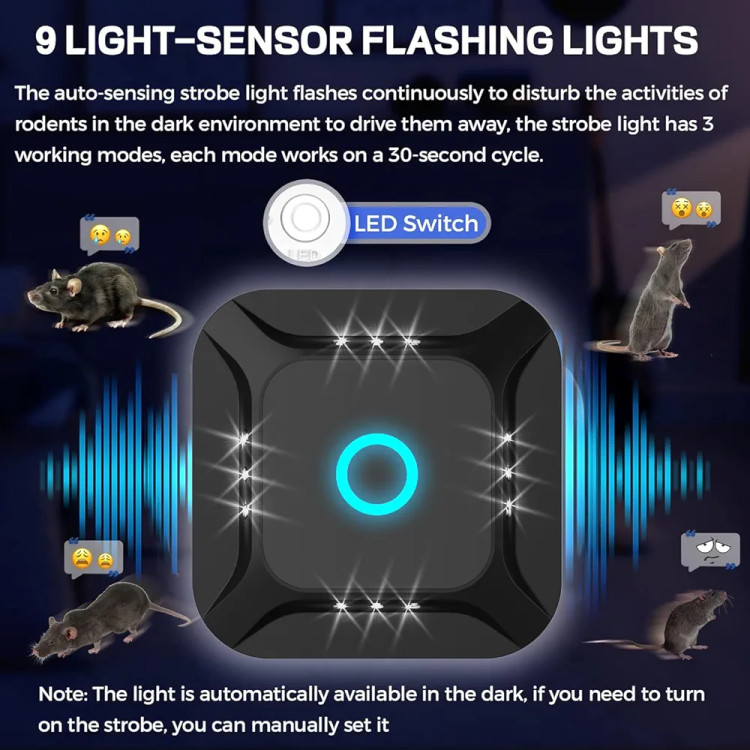 Odstraszacz ultradźwiękowy هوشمند یک راهکار مدرن و کارآمد برای دفع حیوانات موذی و حشرات بدون استفاده از مواد شیمیایی است. این دستگاه با استفاده از فرکانسهای بالا، محیط شما را برای جوندگان، موشها، مارمولکها و حشرات ناخوشایند نامطلوب میکند، بدون اینکه آسیبی به انسانها یا حیوانات خانگی وارد شود. طراحی هوشمند و کاربرپسند این دستگاه امکان تنظیم آسان فرکانس و پوشش گسترده را فراهم میکند، بنابراین میتوانید آن را در خانه، انبار، آشپزخانه یا فضای باز نصب کنید.